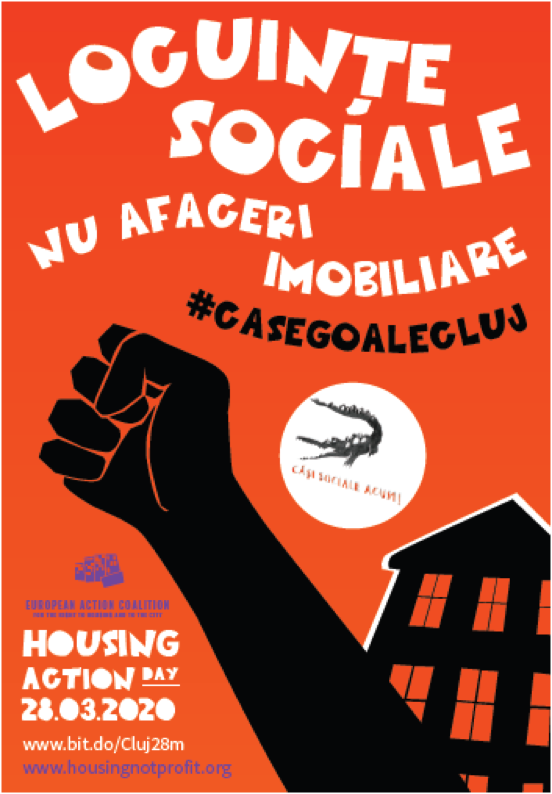 În 28 martie, mai multe grupuri activiste din orașe europene au făcut acțiuni sub egida “Locuințe pentru oameni, nu pentru profit”. În acest cadru, la început de martie 2020, Căși sociale ACUM! a început o campanie cu titlul “Locuințe sociale, nu afaceri imobiliare!”. De atunci, epidemia COVID-19 a impus măsuri radicale peste tot în țară. Suntem în stare de urgență. #StămAcasă, este apelul zilei. Dar asta nu este suficient. Împreună cu Blocul Pentru Locuire afirmăm: #NuStămDeoparte. Ne solidarizăm. Ne organizăm. Revendicăm.